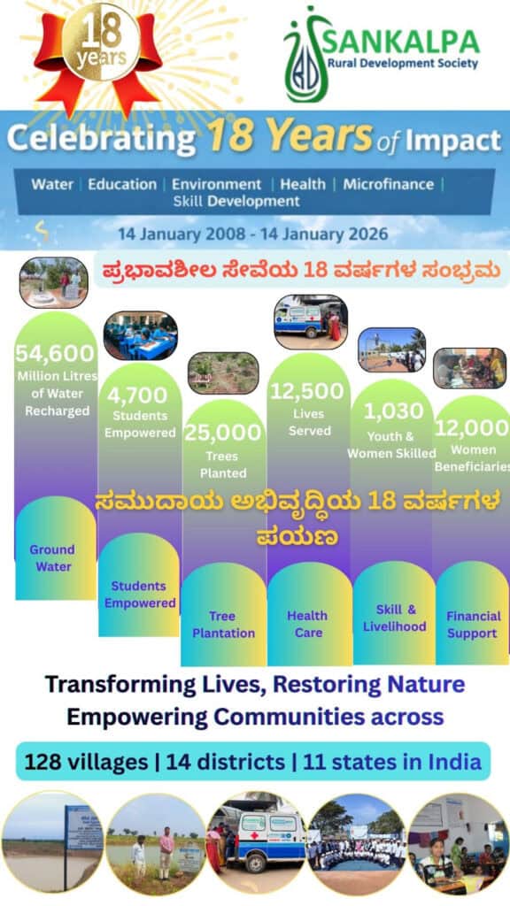 Celebrating 18 years service with rainwater harvesting to rural India – 3000+ bore wells recharged in 11 states, more than 70,000 beneficiaries and supported by a wonderful selection of donors from all over the world.